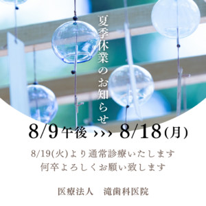 【夏季休暇のお知らせ】8/9午後から8/18まで休診 19日から通常診療